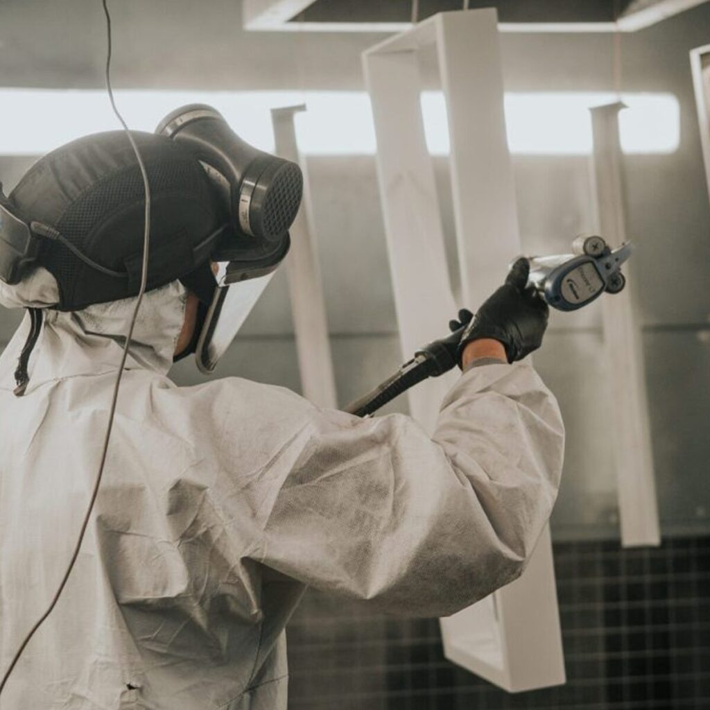 • Large powder coating operation for finishing steel.
