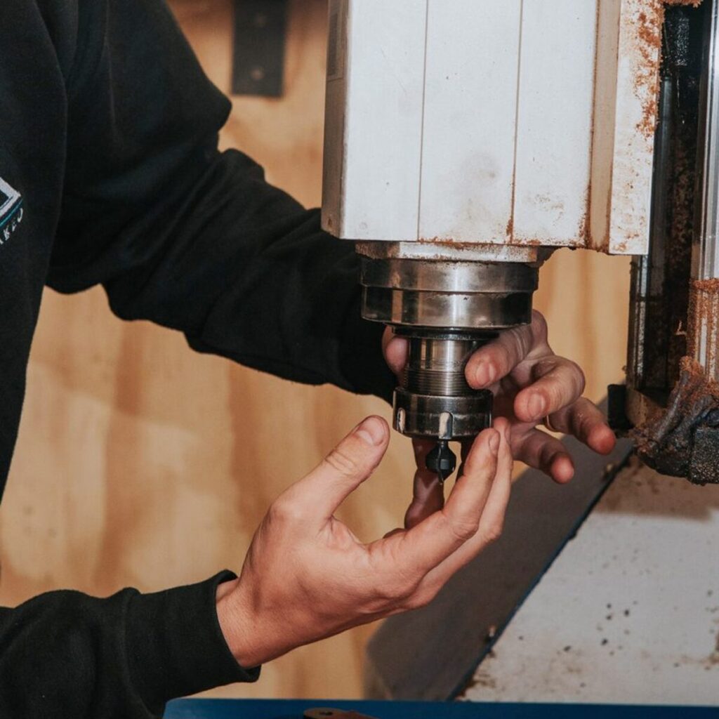 • CNC wood router for flattening, cutting and engraving wood, also used for engraving steel logos on finished furniture.